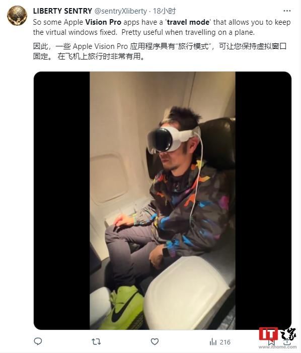 另外IT之家注意到,根据体验过的用户称,在飞机上使用 Vision Pro 时,打开旅行模式应用窗口可以很好地固定住,使用完全没有问题,据悉 Meta 也正在为 Quest 头显开发旅行模式。