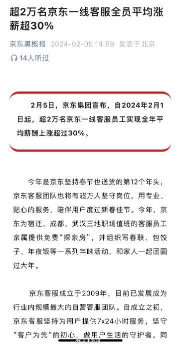 又涨薪了!京东宣布超2万名一线客服平均涨薪超30%,东哥太给力了