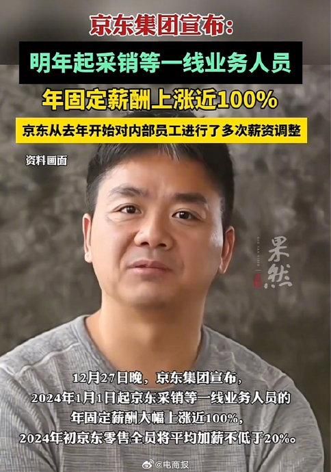 大幅加薪!京东采销等一线业务人员涨近100%