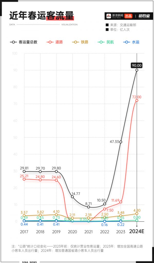 究其原因,一方面是,是“转危为安”之后,我们对家的情感愈加浓烈;另一方面,则是交通运输部进一步扩大2024春运统计口径,将普通国省道小客车人员出行量也增列其中。