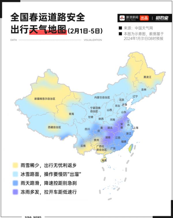 北方地区迎来降雪,南方地区阴雨连绵,而夹在雨雪两方势力之间的黄淮中南部、江汉等地,则出现雨或雨夹雪转雪的复杂变化,为人们的返乡出行也增加了不少阻力。