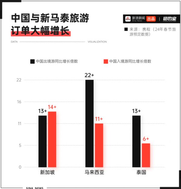 截至1月29日的数据显示,春节期间,中国游客赴新马泰三国的旅游订单同比增长超15倍,其中,马来西亚旅游订单同比增长超22倍。与此同时,新马泰游客来华旅游订单同比平均增长9倍以上。
