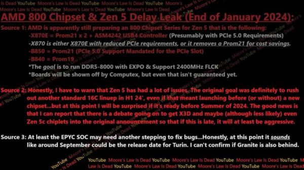 MLID 从一位消息人士处得知,Zen 5 开发中其实“遇到了很多问题”,Zen 5 目前来看应该很难在 2024 年夏季之前准备好,不过发布推迟带来的好处是 AMD 可能会直接同时推出 Zen 5 的 X3D 处理器,甚至是 Zen 5c 芯片。