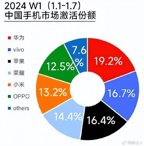 据CounterPoint数据,华为在1月1日-1月7日的中国手机市场激活份额中,以19.2%的份额重回第一,遥遥领先其他品牌。这一成绩的背后,主要得益于华为nova12系列的火爆销售,这款手机在1月5日正式开售后,就获得了相当不错的市场反响,成为了麒麟芯片回归的中端手机首秀代表作。