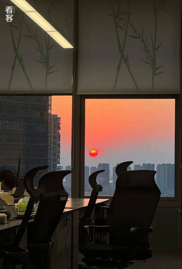 从毛毛的工位可以看到夕阳
