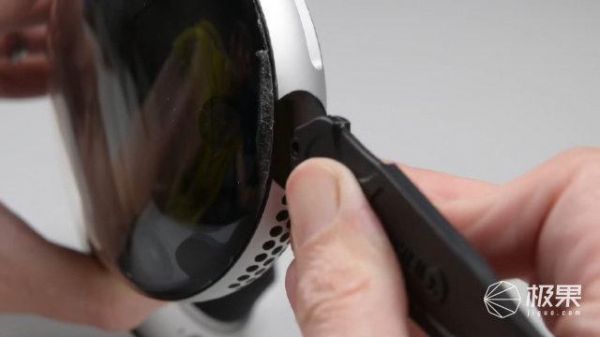 首先,让我们来看看Vision Pro的外观。最外面的玻璃盖板采用了一整块的3D成型全曲面玻璃,拆解过程中发现,苹果在玻璃盖板上使用了大量的胶水,使得拆解变得非常困难。拆下玻璃盖板后,我们可以看到EyeSight显示屏,为了实现3D人脸图像的视觉效果,苹果在OLED屏幕表面加了一层透镜。