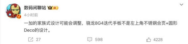 一加的骁龙 8 Gen 4 迭代手板,不是左上角不锈钢合页 + 圆形 Deco 的设计。