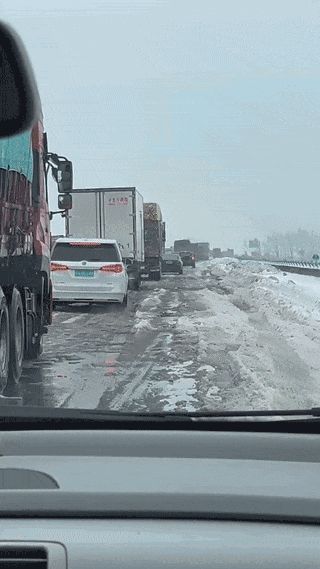 2月4日下午,他们按计划从宁波出发,驶至杭州段高速,堵了一个多小时。晚上八点到了安徽,发现前方高速堵车,他改走省道。车不多,但路面结冰,两边是堆高的雪,他慢慢开了一夜,有段路冰滑,一小时只敢挪9公里。这段全程900多公里的路,林师傅已经开了25个小时,除了趴在车里睡了一个多小时,几乎没有休息。距离目的地还有90公里,他“咬着牙也要开下去。”