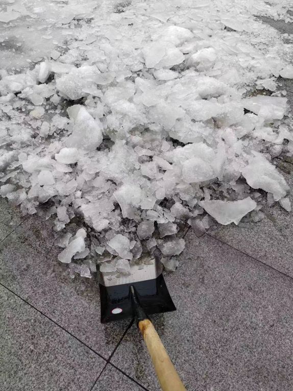 图片来源:受访者提供,武汉当地工作人员正在铲除道路结冰