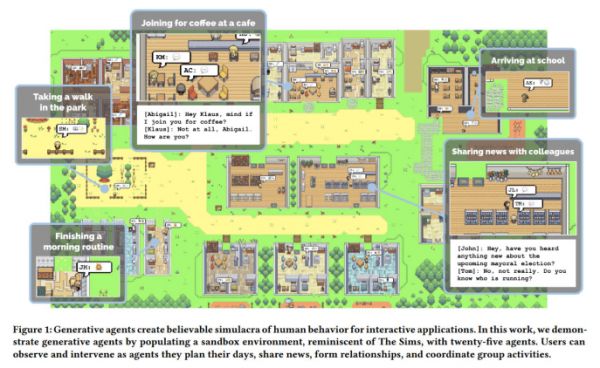 2023年上半年,斯坦福大学人工智能实验室(SAIL)和谷歌联合发表了一篇论文《Generative Agents: Interactive Simulacra of Human Behavior》。