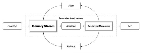 饿了,可以出去吃,可以叫外卖,可以自己做饭,也可以喊朋友来家里吃。此时,AI Agent 首先会检索记忆流,即它会根据你在这个时间点通常在干什么,你和最近的联系人聊了些什么,是否聊到了美食,又或者你的日程表上这个点有没有其他安排等等,来综合判断你是要出去和朋友吃,还是要在家做饭,又或者点个外卖凑活一顿。
