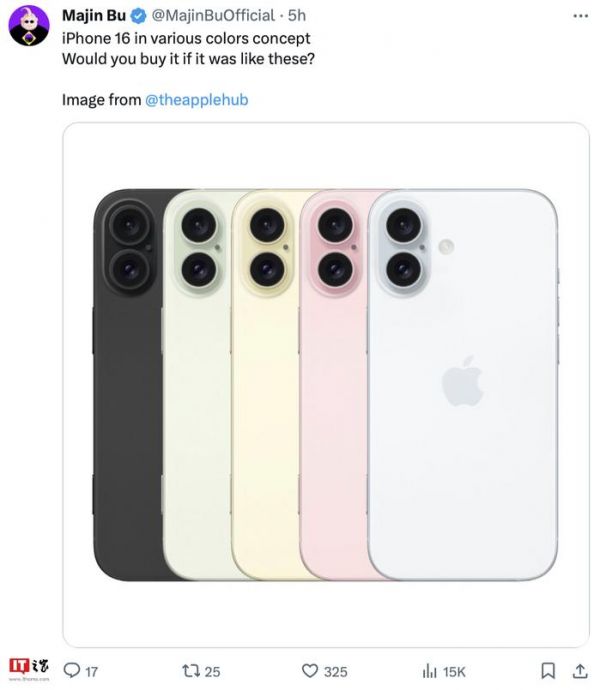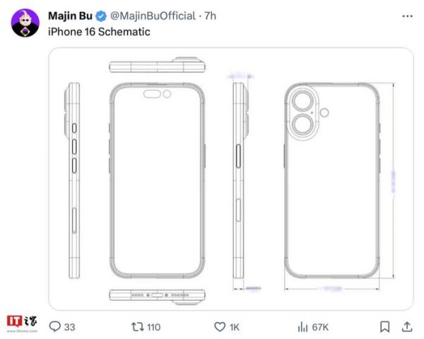 IT之家 2 月 5 日消息,X 平台消息源 Majin Bu 今日分享了“疑似苹果 iPhone 16 手机”的设计图,之后外媒 theapplehub 以此制作了系列手机的渲染图。