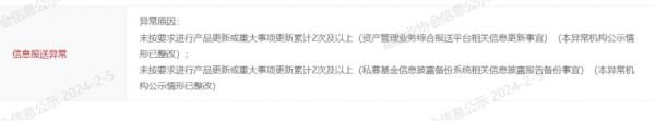 根据中基协官网信息,上述产品中,“力泽稳健二号”、“天虫资本-灵活配置”、“东方恒润润丰1号”等产品都曾出现“信息报送异常”情形,主要表现在“未按要求进行产品更新或重大事项更新累计2次及以上”,未披露的年报信息也有1条。