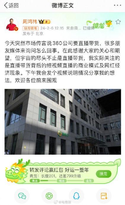 #周鸿祎回应直播带货# 360要开始直播带货了?周鸿祎:宇宙的尽头不止是直播带货,更关注带货背后的商业模式及网红经济。