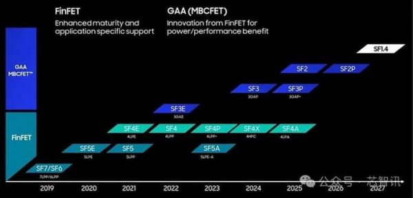 在 2025 年,三星预计将推出 SF2(2nm 级)制造工艺,该工艺不仅依赖 GAA 晶体管,还将采用背面功率传输,这在晶体管密度和功率传输方面带来了巨大的好处,也许在推出基于 GAA 的 SF3E 后三星生产节点的最大改革将发生在 2027 年,届时三星的 SF1.4 技术将通过将纳米片数量从 3 个增加到 4 个来获得额外的纳米片。