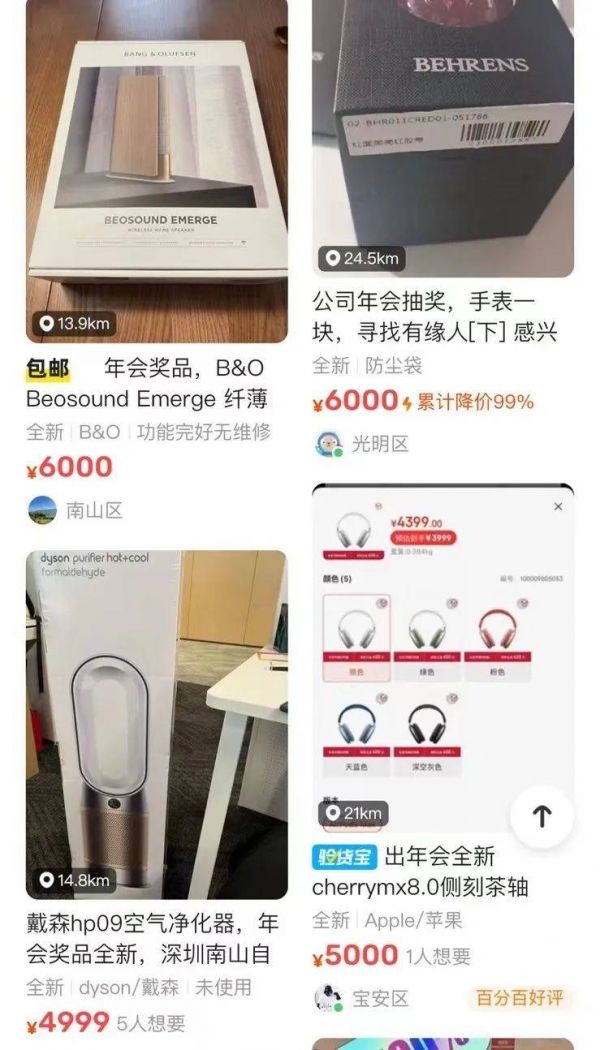 这个时候,奖品不必非得适合自己,秃头的员工也不介意收到戴森的吹风机,单身汉不介意收到化妆品。因为就算抽到的礼品用不上,也能放上闲鱼上转卖。