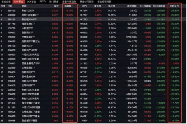 中证1000ETF最先反应,全天成交额超过140亿,多只ETF再现单日涨停,如同受压的弹簧,今年跌幅最深的板块迎来最大的反弹,全市场有7只ETF涨幅超过10%,科创100ETF占据了三个席位。此外,大涨超过9%的ETF有26只,年内来看,仅有国投金融地产ETF在年内收益率为正。