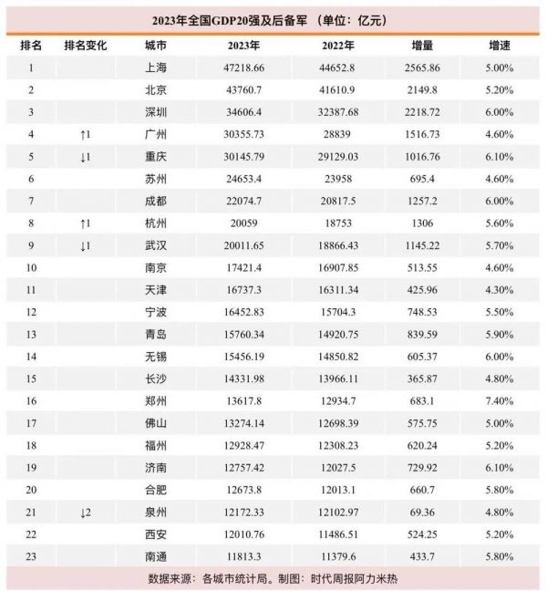 GDP20强城市格局洗牌:泉州连跌两位,合肥成功晋级