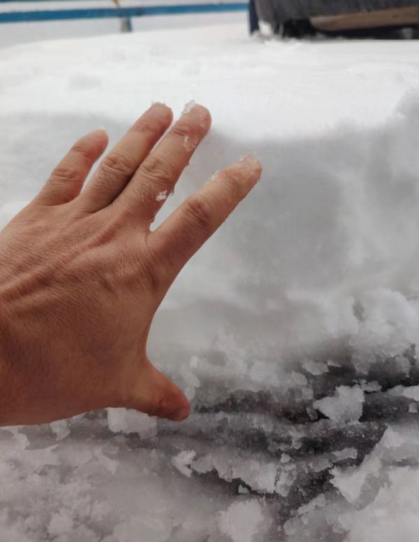 到了2月5日夜,气温降至零下,雨点变成了雪花,雪又压在冰上,车轮打滑无法挪动,在交警的组织下,王师傅跟周围的司机们一起推车,大货车推不动,人们就用撬棍、铁镐在冰面上凿出窟窿,让大货车车轮借着坑洼前行。
