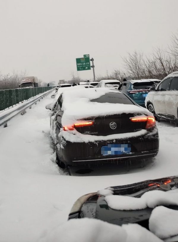 冻雨中困在高速上的人、车、货