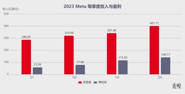 2月2日,Meta 发布 2023 未经审计的四季度及全年财报,报告显示,Meta 2023 Q4 营收为401.11亿美元,同比增长25%;净利润为140.17亿美元,同比幅增长201%;Meta 2023 财年营收为1349.02亿美元,同比增长16%;至于利润,则为 476.51 亿美元,同比增长62%。