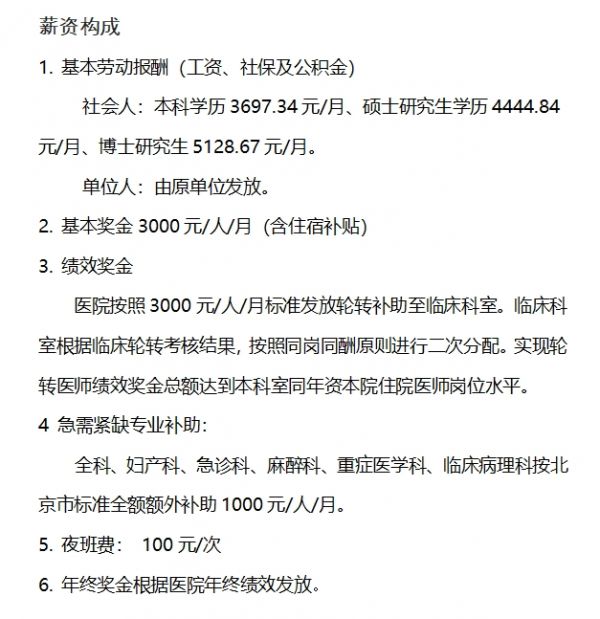 北京大学人民医院住院医师规范化培训人员薪资简介