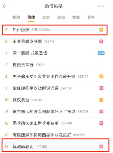 2月6日,#知否版权##优酷养老剧#先后登上热搜,这两个看似让人有些摸不着头脑的话题,实则牵出了视频平台焦灼竞争下的新法宝——经典剧集争夺战。