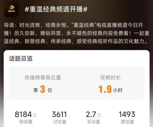 “重温经典”频道登上热搜 图片来源:微博截图
