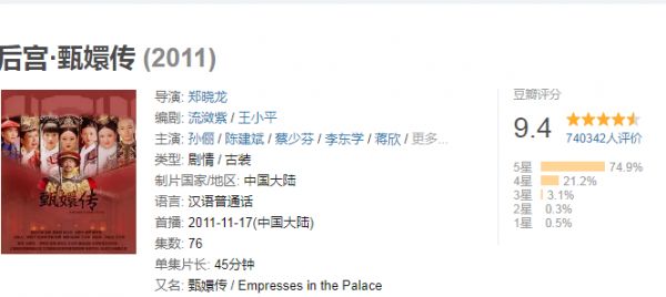 《甄嬛传》播出至今已有13年,仍有不少网友表示每年必刷 图片来源:豆瓣截图