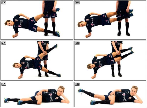 一些简单锻炼可降低运动中的内收肌损伤风险,如哥本哈根内收肌(Copenhagen Adductor, CA)运动干预。它由3个难度逐渐增加的练习组成,在一项研究中将半职业足球运动员的腹股沟部位损伤患病率由21.3%降至13.5%。