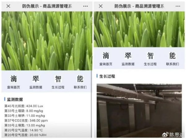 滴翠智能农业溯源系统监测数据和生长过程查询
