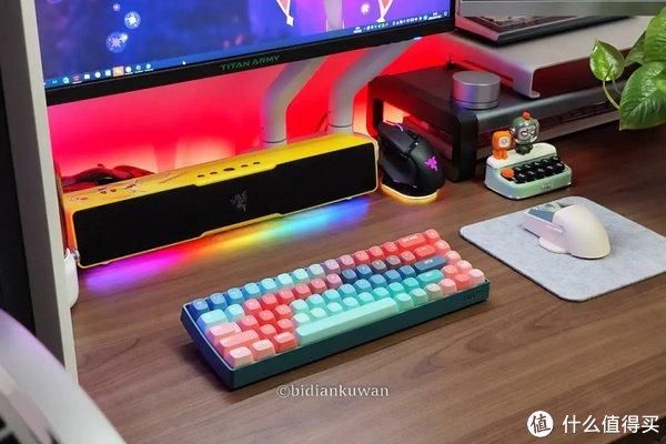 我也要提醒各位,键盘可以是主角,更是“拼图一角”,是“桌搭大业”的一个组成部分。桌搭爽不爽要看全局——D厅灯箱一般的PC主机,4K高刷电竞显示器,RGB条形桌面音箱,各种轴体光效的RGB电竞键鼠,外加一些扩展坞配件,全都配齐的话,钱包负担不小。总之,要么量力而为,要么一开始就不要跟风。听劝,对你有好处!