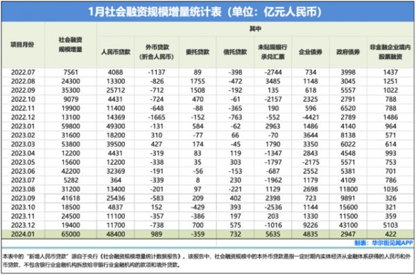 初步统计,2024年1月社会融资规模增量为6.5万亿元,比上年同期多5061亿元,超出普遍预期。