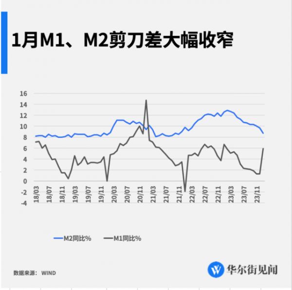 M2-M1剪刀差为2.8%,较上月的8.4%大幅收窄。