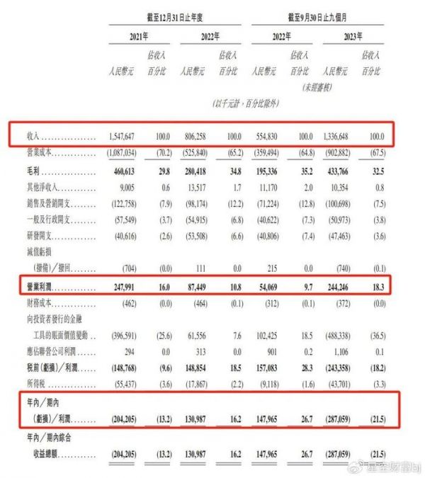 《招股说明书》显示,2021-2023年9月底(简称:报告期)内,手回科技的营业收入分别为15.48亿元、8.06亿元和13.37亿元,同期净利润分别为人民币-2.04亿元、1.31亿元、和-2.87亿元。报告期累计亏损达到3.6亿元。而2022年的账面盈利主要系给投资者发行的金融工具公允价值的增加,其实2022年的营业利润在报告期内最差。