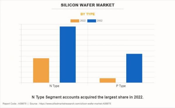 根据类型,N 型细分市场在 2022 年占有最高的市场份额,占全球硅晶圆市场收入的一半以上,预计在整个预测期内将保持其领先地位。