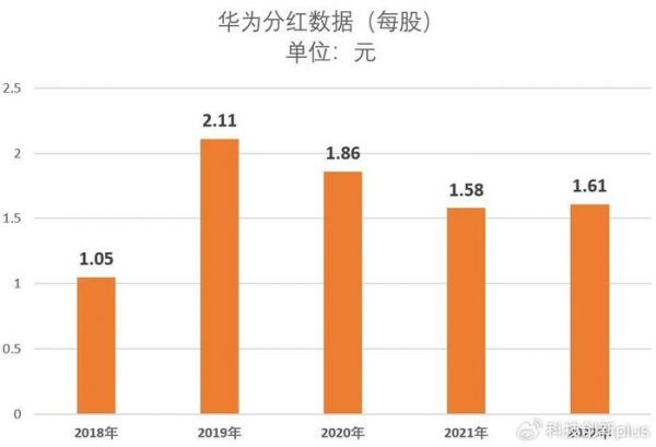 数据显示,过去的5年,华为分红就没有断过,有高有低,最高的是2019年的2.11元每股,最低的是2018年的1.05元每股。