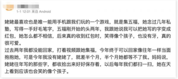 在互联网上一搜,的确有不少用户自发地分享着有关五福的家庭故事,从用户的角度看,有意义的不是游戏和产品本身,而是难得地创造了一个时代的共同记忆。