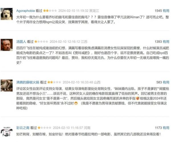 虎扑为今年春节档进行了打分,《热辣滚烫》得到了不及格的最低分。在做电影导演并得到全球单片票房最高女导演之前,贾玲无论在同性或异性群体,都几乎是无差评的艺人。她是无害的、喜感的、仗义的、德艺双馨的。