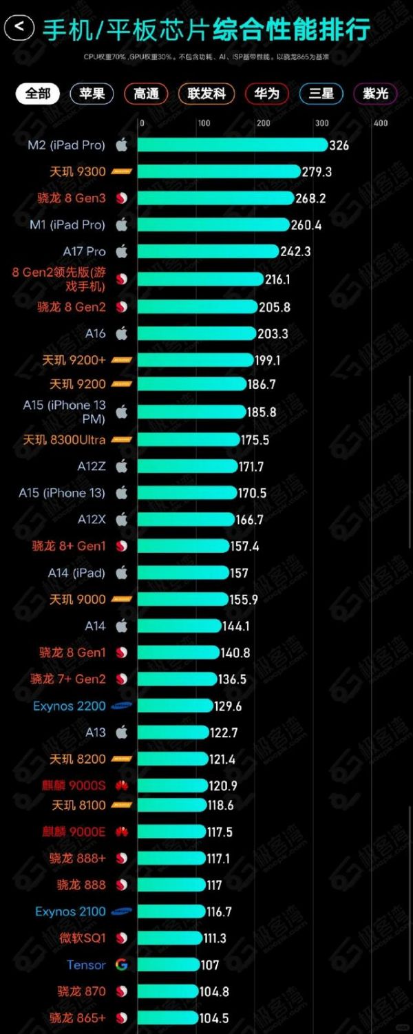 不求最好,够用即可!没必要上骁龙8Gen3、天玑9300等最强旗舰,像骁龙7Gen3等就足够了。