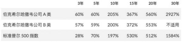 以下是截至2023年11月9日,伯克希尔与标普500指数不同时期的总回报率对比: