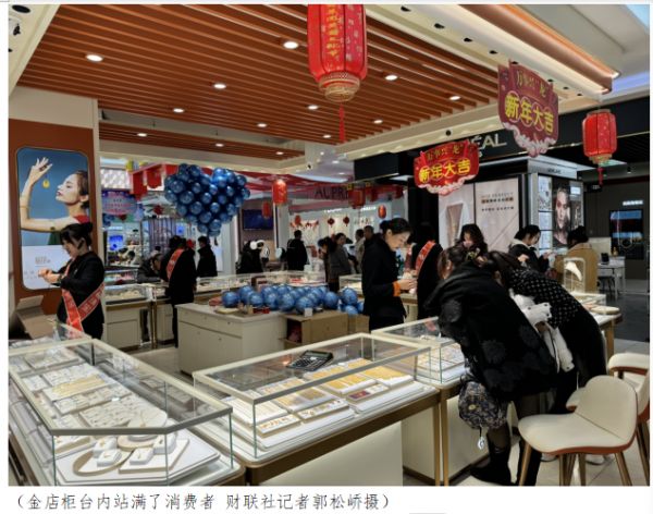 春节期间,各地黄金市场出现“淘金”热潮。财联社记者在黑龙江省七台河市观察到,在一家名为大商新玛特的商场里,就开了8家金店。距离该商场不远处的步行商业街也有10家左右,不少年轻人在柜台前咨询试戴。此外,龙元素金饰品销量火爆。