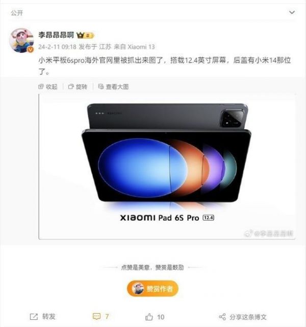 近日,有博主爆料,小米平板6S Pro官图在海外曝光。而在更早之前,微博博主@数码闲聊站也透露过相关配置信息:配备 12.45 英寸 LCD 屏,屏幕比例为 16:10,支持 144Hz 刷新率,搭载骁龙 8 Gen 2 处理器,还支持 120W 有线快充。此外还有50MP 双摄、67W / 90W 双芯大电池 + 4 扬声器 + 更完整的多端新系统。