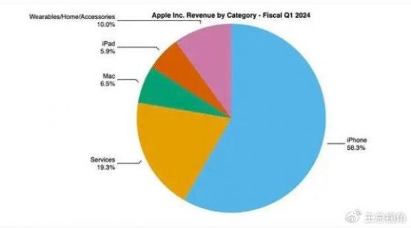 前几天苹果发财报,整体上看数据还算如意。在去年4季度,苹果全球营收达到1191亿美元,且净利润达到了339亿。其中,仅是iPhone收入就达到697亿美元,占比接近60%,其余则是服务收入和mac以及iPad收入。
