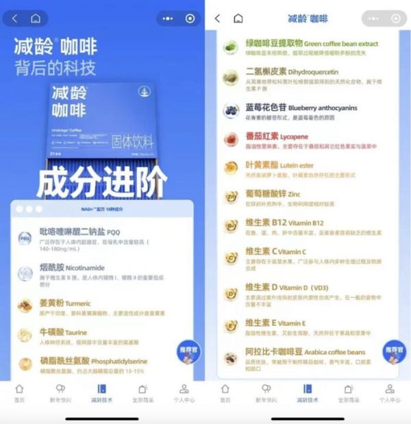 所谓的“减龄咖啡”,顾名思义,是一款带有健康性质的饮品,或者说是“咖啡+保健品”。