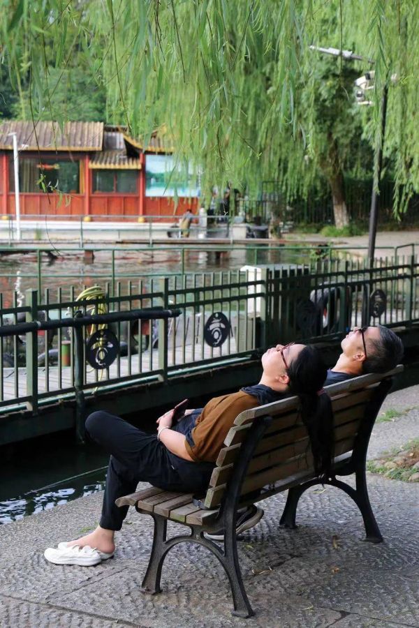 2023年9月1日,杭州。在西湖边放空的夫妻。(图/阿灿)
