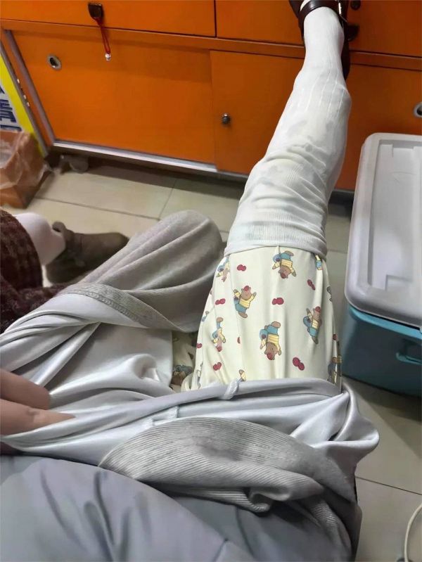 从目前的状况来看,广大打工人的穿着虽然同样随意,主打一个手边有什么就穿什么,但最终效果与大学生相比还是少了一丝视觉上的冲击:他们不会理直气壮地穿全套睡衣出门,顶多是用颜色俗气、没有版型可言的多口袋棉服搭配灰色运动裤,以及一双许久没有刷过的鞋,再戴上帽子、一次性口罩和围巾,只露出眼睛,看上去似乎只是一个没有那么时尚的普通人,而能够展现出不寻常的精神状态的,大概只有那随手盘起、比刚睡醒还要凌乱的头发,和露脚面鞋子下各式颜色与图案的棉袜。