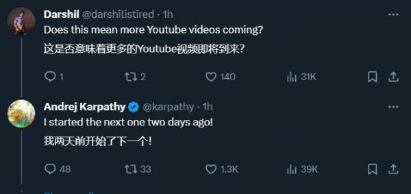 在此期间,Karpathy除了完成OpenAI的研究工作,还做了一些个人项目,包括录制教育视频、开发关于Llama 2的开源项目——llama2.c等,详情见扩展阅读。在离职之后,这些工作还将继续。Karpathy表示,新的视频已经在制作了。