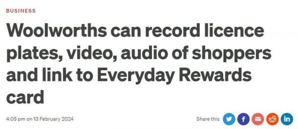 Woolworths称,录音、录像信息仅用于安保、防盗目的。