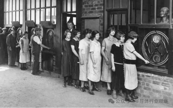 工人们在 CT-R 旗下国际时间记录公司IBM 公司销售的拨号录音机上打卡